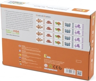 Set sadrži 10 obostranih kartica (20 motiva) s morskim životinjama i drugim slikama. Djeca pogađaju kojem od ponuđenih crteža pripada skriveni element – ako nisu sigurna, otkrivaju dodatni trag podizanjem žetona. Kvalitetna drvena izrada i netoksične, ekološki prihvatljive boje osiguravaju sigurnu igru za najmlađe.