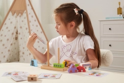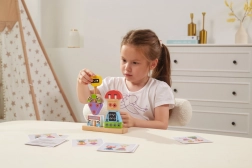 Otkrijte pametnu igračku koja raste s djecom. Drveni dijelovi raznih oblika i boja lako se stavljaju na igle baze i omogućuju slaganje različitih robotskih likova. Priložene kartice s predlošcima vode od jednostavnih do zahtjevnijih kombinacija te razvijaju koncentraciju i strpljenje.