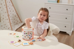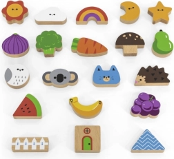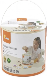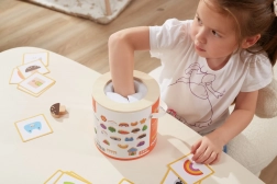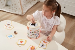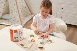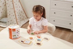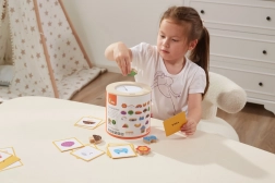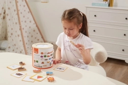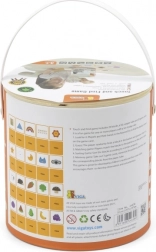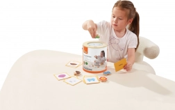 Igra Ulovi i pronađi. Pakiranje sadrži 20 kockica, papirnatu kanticu, 20 igraćih kartica i poklopac. Dimenzije pakiranja cca 16 x 15,5 cm. Dob: 3+