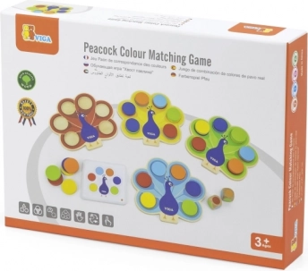 Dječja edukativna igra VIGA paun na zabavan način uči djecu prepoznavanju boja, razvija finu motoriku i oko-ruka koordinaciju. Šareni žetoni umeću se u paunov rep prema kartama ili prema bacanju šarene kocke – idealno za Montessori učenje, koncentraciju i zajedničku igru.