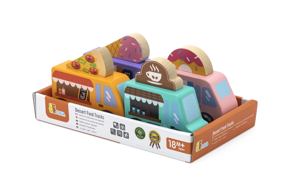 Drvena Viga set food truckova – 4 vozila za male slastičare