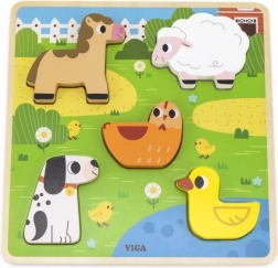 VIGA koristi kvalitetno drvo i glatke površine za sigurnu igru. Debeli dijelovi dobro leže u ruci, stoga su savršeni za male dječje ruke. Puzzle potiče samostalnost, koncentraciju i kreativnu igru.