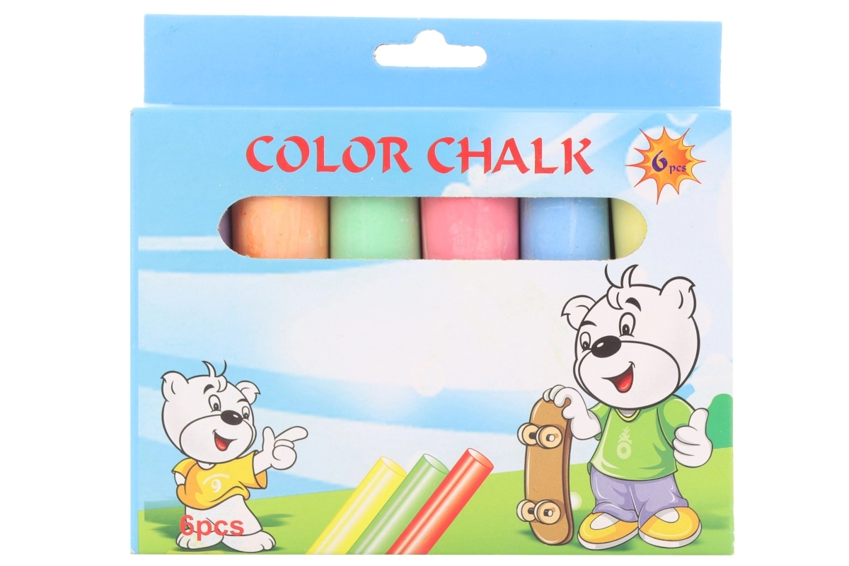 Zabavan set za svu kreativnu djecu. Pakiranje sadrži 6 kvalitetnih kreda, idealnih za crtanje na ploči i vanjskim površinama.