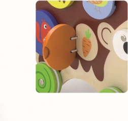 Brojanje, pomični labirint sa životinjama, kuglični labirint, zupčanici i edukativni rotirajući elementi – sve na jednoj igrački za duge sate otkrivanja.