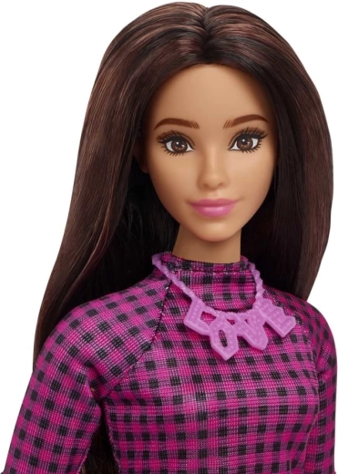 Lutka BARBIE Fashionistas donosi aktualne modne trendove u dječji svijet. Duga tamna kosa lijepo dolazi do izražaja u kontrastu s ružičastom ogrlicom i kariranom haljinom. Zahvaljujući univerzalnom stilu, izvrsna je za svakodnevnu igru i za kolekcionare.
