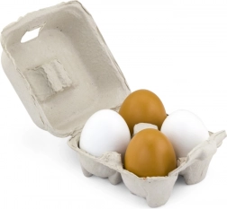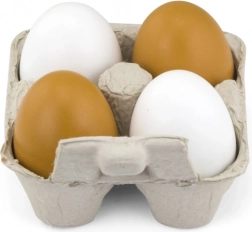Četiri drvena jaja u dvije boje pružaju djeci autentičan doživljaj kuhanja i kupovine.