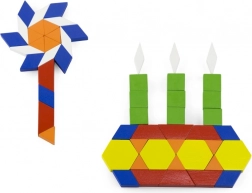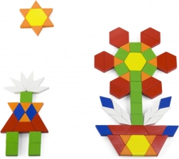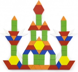 Velik broj plosnatih drvenih blokova u raznim oblicima i bojama potiče maštu i razvoj prostorne predodžbe. Djeca mogu slagati uzorke, životinje i čitave slike.