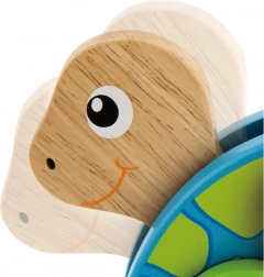 Ova šarena drvena vučna kornjača osmišljena je da motivira djecu na hodanje, potiče koordinaciju pokreta i prirodno razvija finu i grubu motoriku. Robusna drvena izrada i ugodno zaobljeni rubovi osiguravaju sigurnu igru, dok izražajne boje i razigran dizajn potiču vizualnu percepciju.