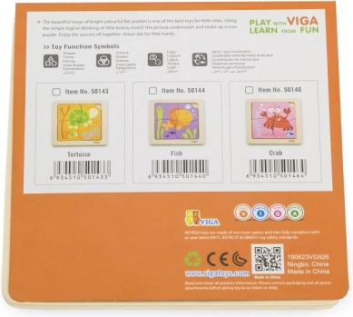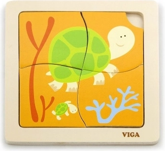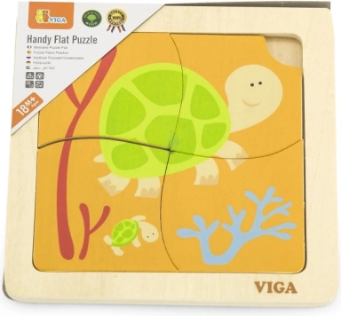 Drvene puzzle s kornjačicom dizajnirane su za djecu od 18 mjeseci. Sastoje se od četiri velika dijela koji se lako uklapaju u drveni okvir ili se mogu slagati zasebno. Svaki je dio šaren i nudi jedinstven način za razvoj dječje prostorne mašte i koordinacije oko-ruka.