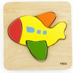 Otkrijte prvu slagalicu za najmlađe: drvene mini slagalice Viga s motivom aviona. Set sadrži 4 robusna dijela koji se lako hvataju i umeću u profiliranu drvenu podlogu. Igračka potiče finu motoriku, prepoznavanje oblika i logičko razmišljanje te je izrađena od sigurnih, netoksičnih materijala bez oštrih rubova.