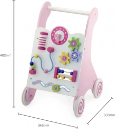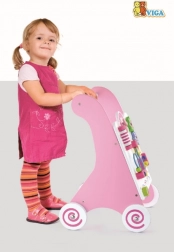 Hodalica je opremljena gumenim točkićima, koji sprečavaju klizanje i osiguravaju sigurnost pri hodanju. Cijela igračka je izrađena od lakiranog drva, što pruža topao i prirodan dodir, istovremeno je vrlo otporna na habanje. Pakirana u šarenu kutiju s ručkama, je idealna kao poklon.