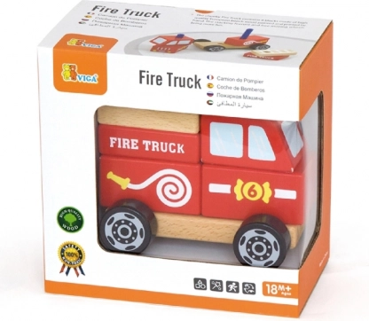 Drvena slagalica vatrogasnog vozila VIGA idealna je igračka za male ljubitelje spasitelja. Dijelovi od glatkog drva lako se drže, sigurno se slažu, a nakon sastavljanja nastaje izdržljivo vozilo s kojim se može odmah krenuti “na požar”.