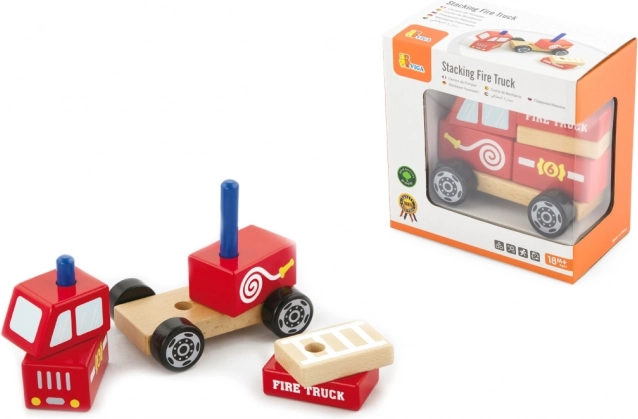 Slagaj pojedine drvene dijelove na podvozje i izradi svoje vatrogasno vozilo. Djeca vježbaju strpljenje i koordinaciju korak po korak.