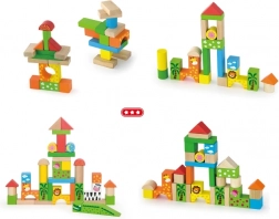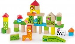 Šarena set drvenih kocaka sa zoo motivima za djecu od 2 godine. U kantici se nalazi 50 dijelova i slikovna brošura s uputama za slaganje u tri razine. Podržava kreativnost, finu motoriku i prostornu maštu, a uz to dolazi s praktičnim pakiranjem u kantici za jednostavno spremanje.