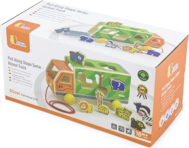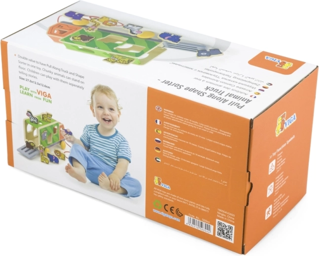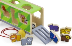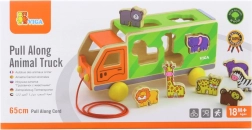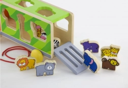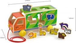 Presladak drveni kamion na povlačenje sa životinjama i umetaljkom razveselit će male istraživače od 18 mjeseci. Zahvaljujući 8 drvenim životinjama i otvorima za razvrstavanje, djeca vježbaju prepoznavanje oblika, finu motoriku i koordinaciju oko–ruka. Kompaktne dimenzije 27 × 12,5 × 12 cm i uzica za povlačenje čine ga idealnom igračkom za dom i putovanja.