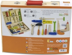Ovaj kvalitetni drveni set alata brenda VIGA donosi djeci realističan doživljaj rada s alatima. Šareni i izdržljivi komadi, poput bušilice, čekića, odvijača, ključa i pile, potiču maštu te nude siguran način za razvoj spretnosti i koordinacije oko–ruka.
