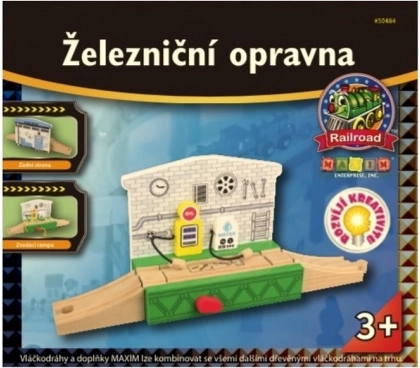 Svaki vlakić s vremena na vrijeme treba popravak. U radionici se brinu o dobrom tehničkom stanju. Ovdje se vlakići mogu zaustaviti s kvarovima i nedostacima. Okretanjem crvene ručice pruga se podiže i vlakić sam odlazi. Dimenzije cca 31 cm x 8 cm x 13 cm, uključujući rampe. Pakiranje sadrži rampe. Vlakopruge i lokomotive Maxim mogu se kombinirati s drugim drvenim vlakoprugama na tržištu. Dob: 3+.