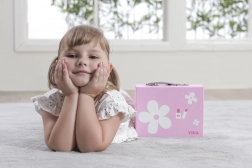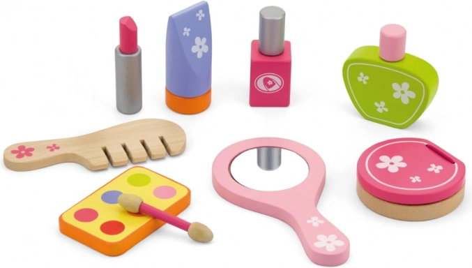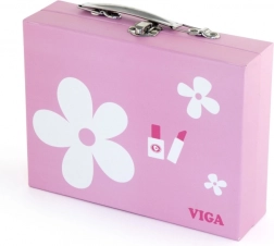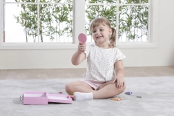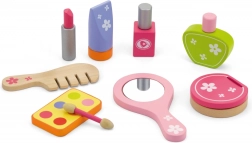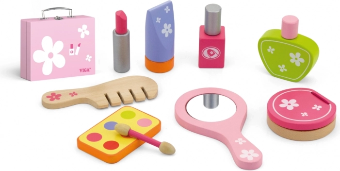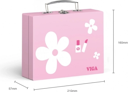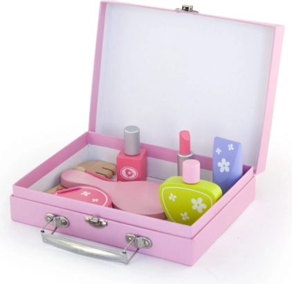 Ovaj drveni set kozmetike u kovčežiću donosi djeci radost oponašanja odraslih, a pritom je potpuno siguran. Svi dijelovi su šareni, ugodni za držanje i spremljeni u čvrstom prijenosnom kovčežiću, pa se lako pospremaju i nose na put.