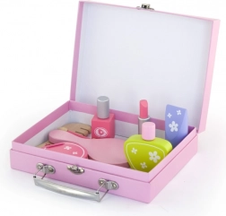 Stilizan drveni set za uljepšavanje za male šminkerske dame u praktičnom kovčežiću razveselit će svako dijete od 3 godine. Sadrži sve za realističnu igru salona – češalj, ogledalce, lak za nokte, ruž, miris i druge dodatke. Zahvaljujući čvrstom drvu i glatko obrađenim dijelovima igra je sigurna i dugotrajno izdržljiva. Poticanje mašte, fine motorike i socijalnih vještina.