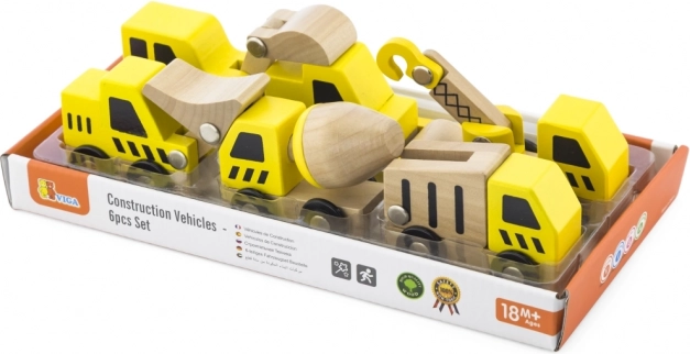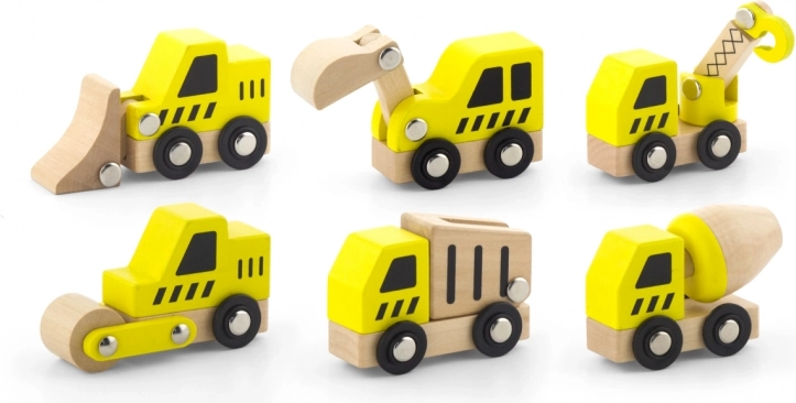 Ovaj kvalitetan set sadrži 6 različitih građevinskih vozila u jarkoj žutoj boji s prirodnim drvenim detaljima – idealno za prve utrke po podu i igru na gradilištu. Zahvaljujući zaobljenim oblicima i izdržljivoj drvenoj konstrukciji autići su sigurni i ugodni na dodir.
