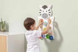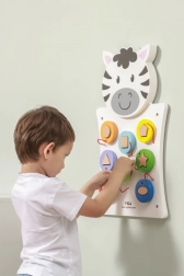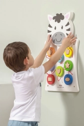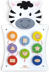 Otkrijte čaroliju drvene zidne ploče Zebra tvrtke VIGA, koja razvija ne samo kreativno razmišljanje i spretnost, već i sposobnost prepoznavanja oblika i boja. Ova je igra prikladna za malu djecu koja kroz zabavu razvijaju svoje osjetilne vještine.