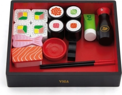 Set sadrži razne drvene komade sushi, štapiće za jelo, posudicu za sojin umak i poslužavnik, koji savršeno oponašaju autentično iskustvo posluživanja sushi. To je odličan način da djeca nauče o različitim vrstama hrane i osnovnim vještinama japanske kuhinje.