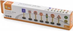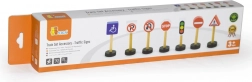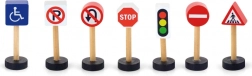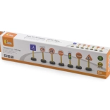 Ova memorijska i edukativna igra uključuje 7 različitih drvenih prometnih znakova koji će pomoći djeci da savladaju osnovna pravila cestovnog prometa. Igračka je idealna za djecu od 3 godine i savršeno nadopunjuje svaki građevni set ili željezničku prugu.