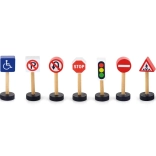 Set od sedam drvenih prometnih znakova pruža djeci osnovno znanje o pravilima cestovnog prometa.