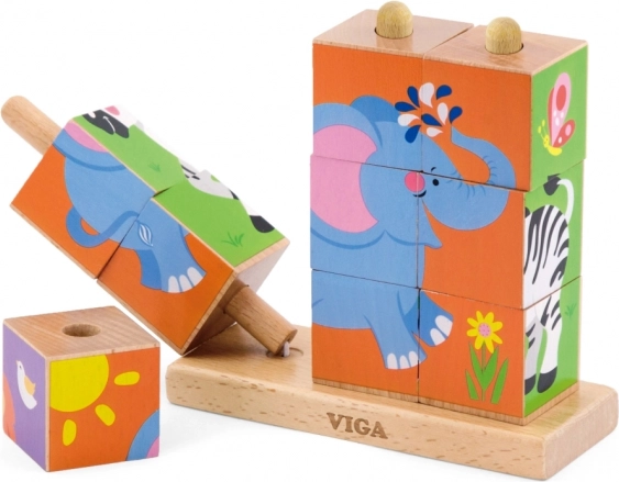 Otkrijte zabavnu drvenu igračku za najmlađe: slagalice s kockama Viga sa životinjama sa safarija. Djeca slažu od 9 čvrstih drvenih kocki slike slona, lava, žirafe i zebre na stabilnom stalku. Kvalitetno bukovo drvo, nagibni klinići za lako okretanje i razvoj fine motorike, logike i strpljenja. Idealno od 24 mjeseca.