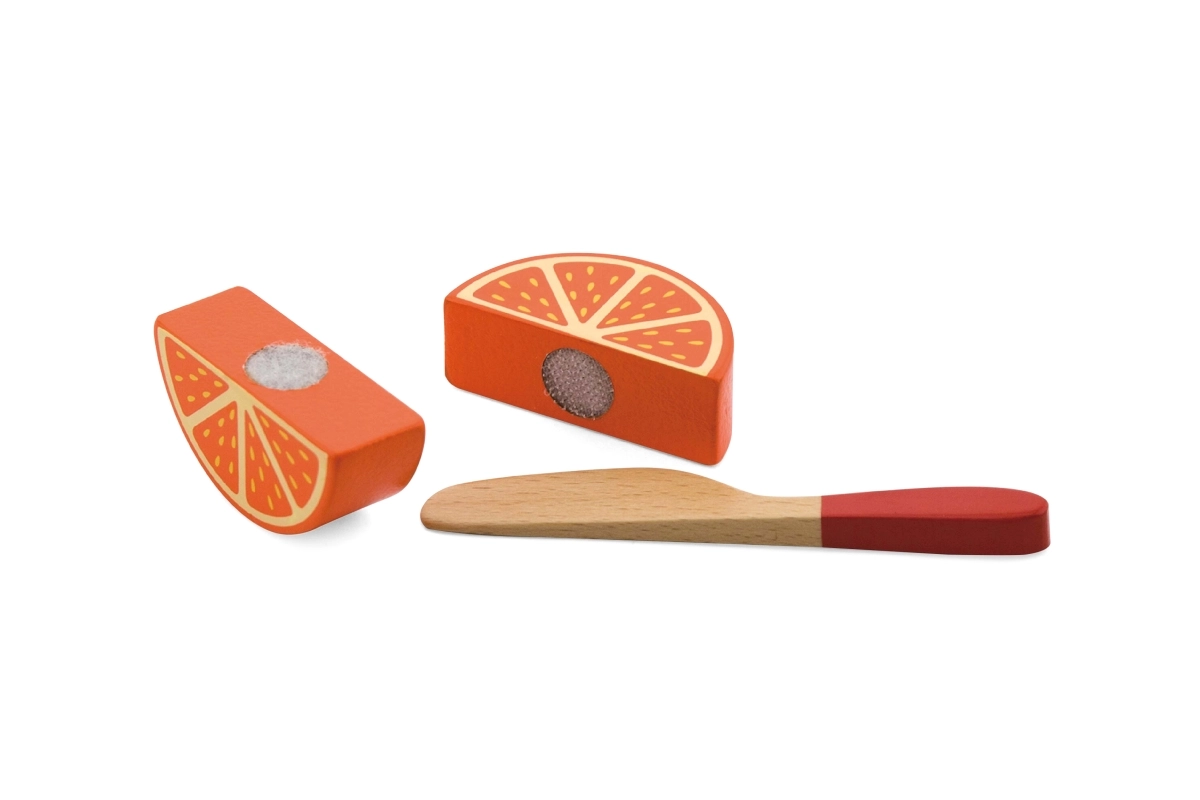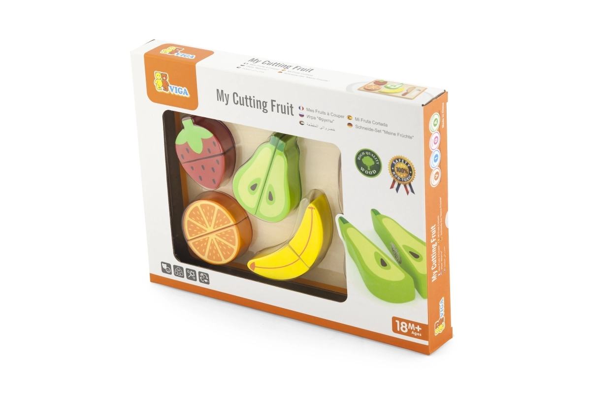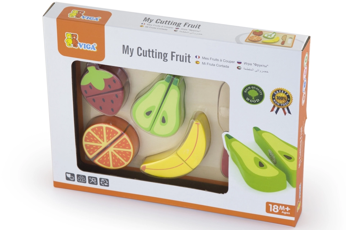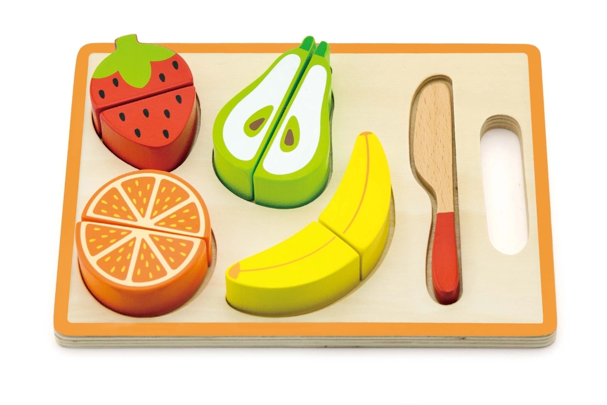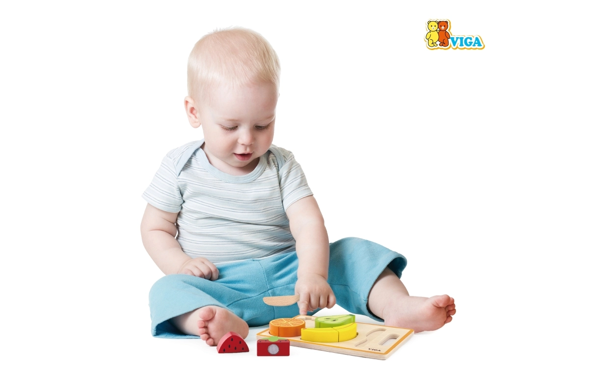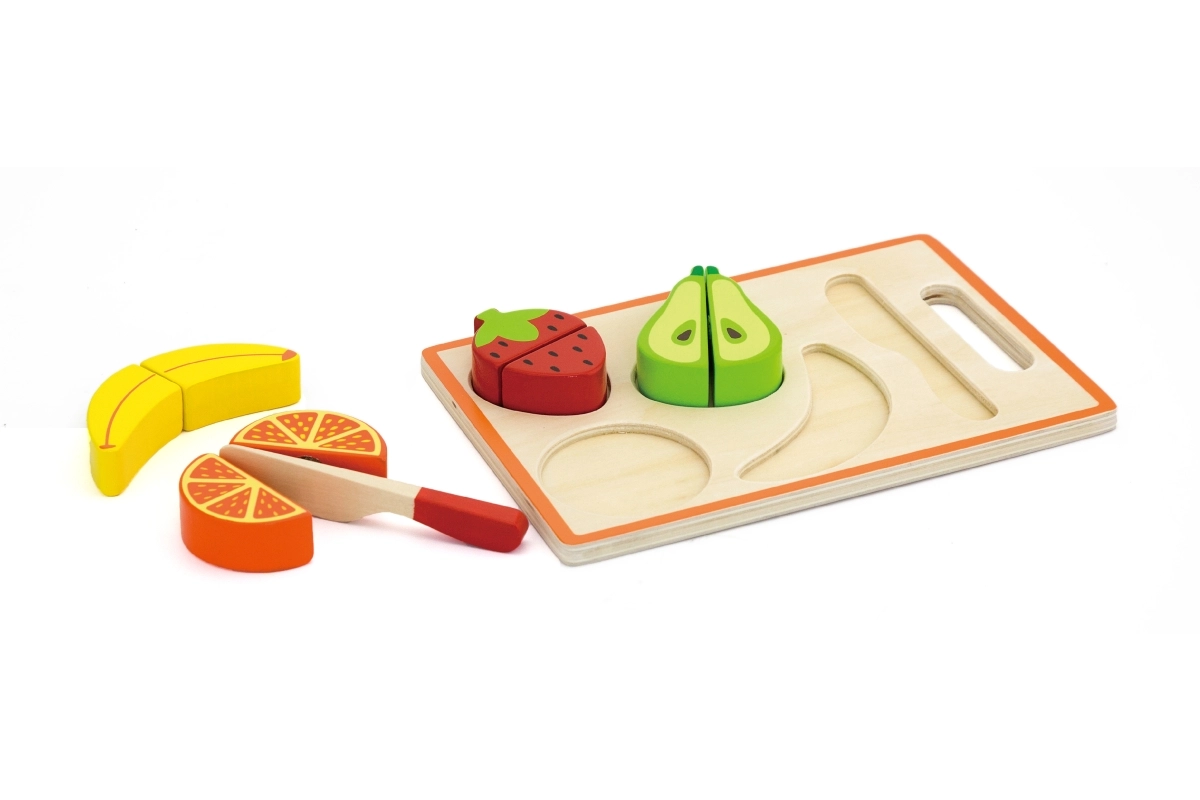 Ovaj kvalitetan drveni set nudi sigurnu igru kuhanja: pojedini komadi voća spojeni su čičkom, zahvaljujući čemu ih djeca mogu više puta “rezati” i ponovno spajati. Zahvaljujući realističnoj izradi djeca uče prepoznavati oblike i boje, vježbaju hvat i koordinaciju te razvijaju maštu u igri kuhanja.