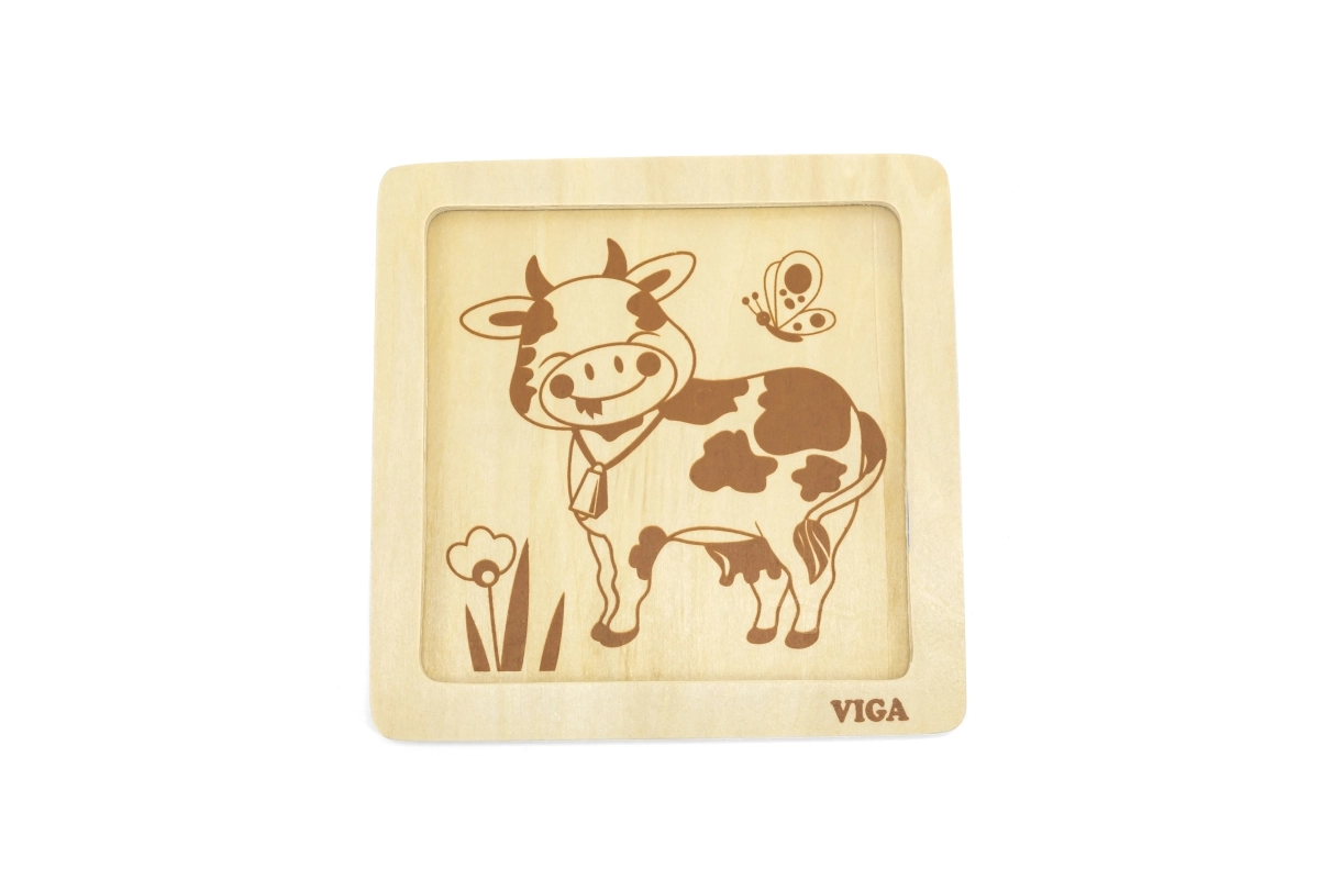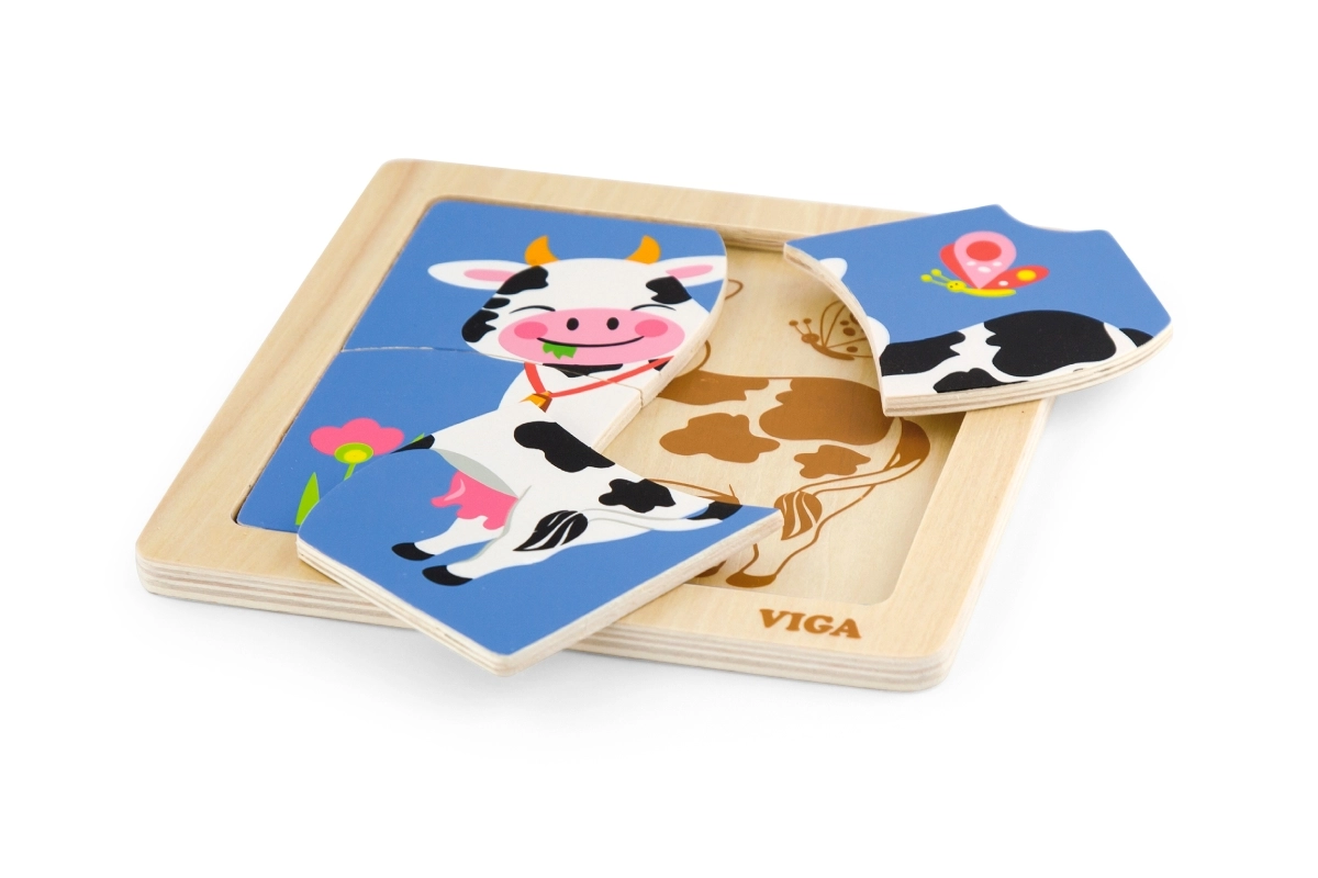 Drvene puzzle slažu se u simpatičnu sličicu kravića, što potiče kreativnost.
