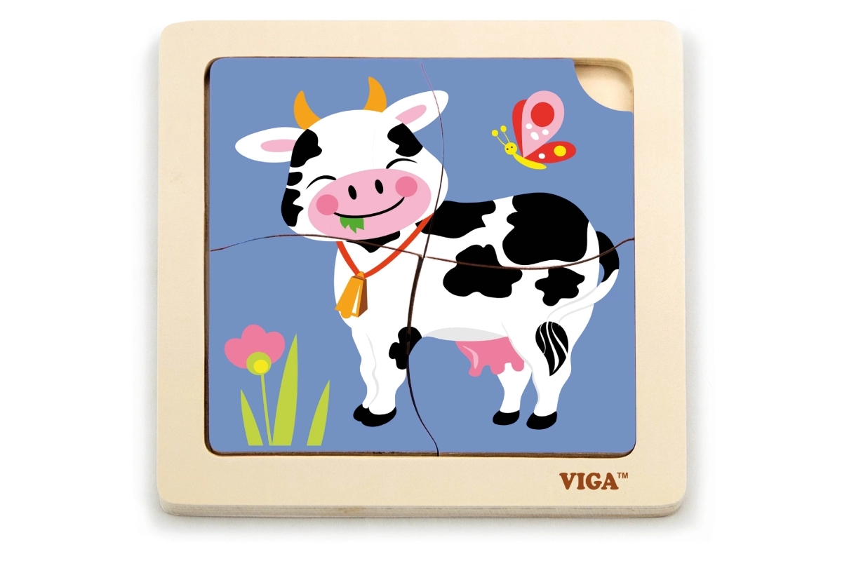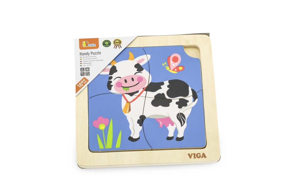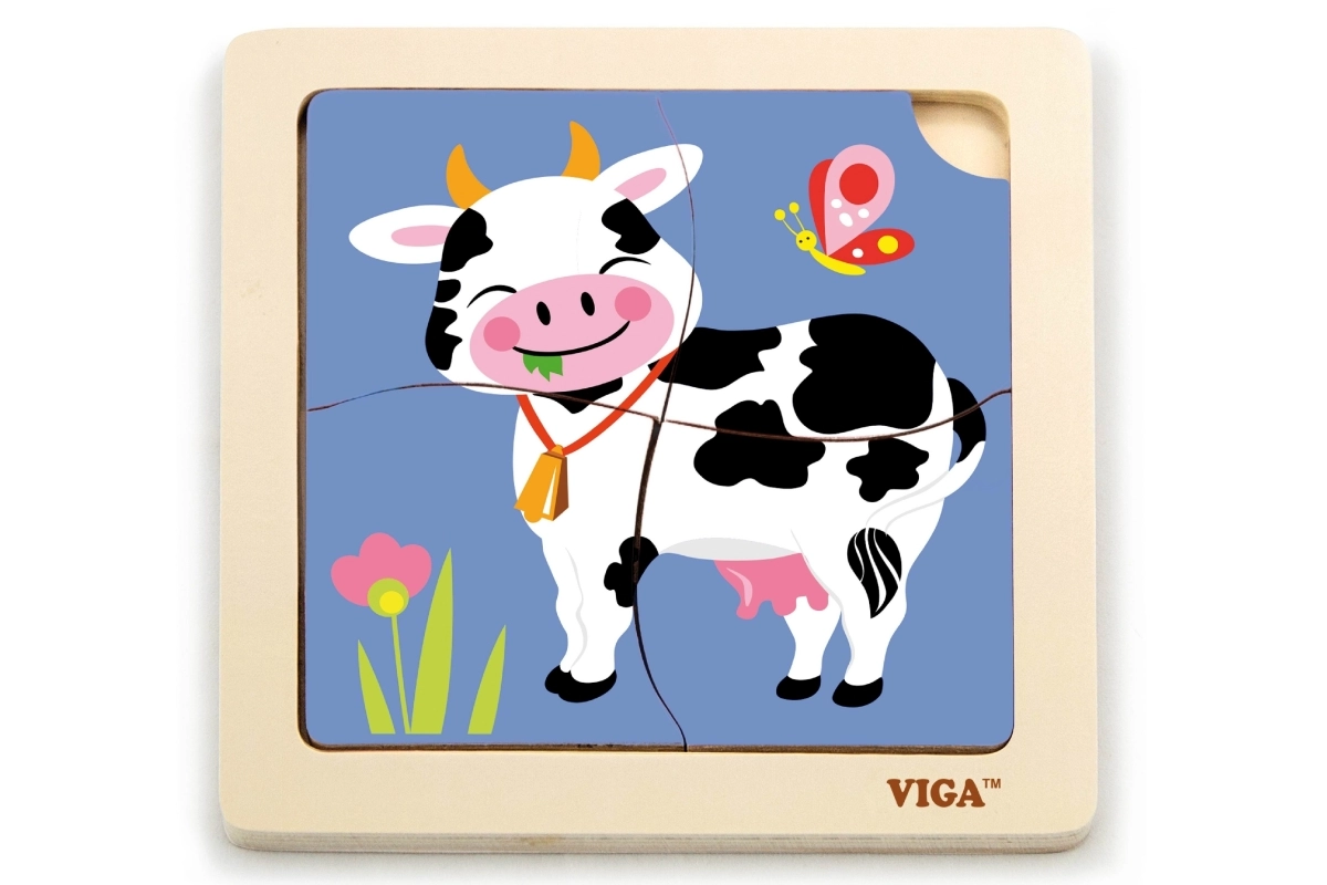 Drvene puzzle kravić brenda Viga pružaju maloj djeci odličan način za učenje prepoznavanja oblika i razvoj fine motorike. Set sadrži 4 dijela puzzli i sličicu koja pomaže djetetu pri slaganju dijelova. Puzzle su pažljivo izrađene od sigurnih drvenih materijala i obojane živim, netoksičnim bojama. Svaka igra s ovim puzzlama bit će za vaše dijete puna radosti i razvoja.