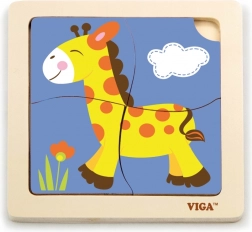 Obogatite dječju igru domišljatim drvenim puzzlama Viga koje uvode djecu u svijet mašte i spoznavanja. Uz pomoć četiri predivno obojena dijela žirafe djeca uče razvijati: