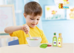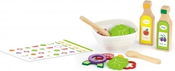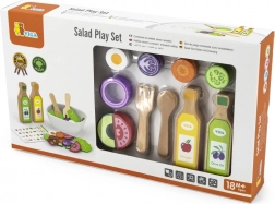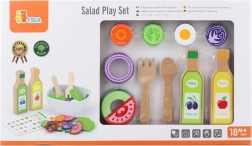 Ovaj kvalitetan drveni set za salatu donosi djeci realističnu kuhinjsku zabavu. Zahvaljujući bogatoj opremi mali kuhari mogu pripremiti vlastitu salatu, miješati sastojke u zdjeli i posluživati uz pomoć pribora. Igra potiče zdrave navike i prirodno uči prepoznavati različite vrste povrća.