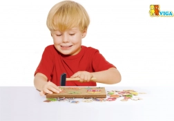 Kreativna čavlić-panela farma od pluta brenda Viga potiče finu motoriku, logičko razmišljanje i kreativnost djece od 3 godine. Zahvaljujući 24 drvena dijela, ploči od pluta, malom čekiću i pinovima djeca stvaraju vlastite farme prema mašti ili prema predlošcima. Sigurne zaobljene rubove i izdržljiva izrada osiguravaju puno zabave i učenja.