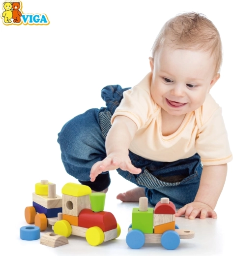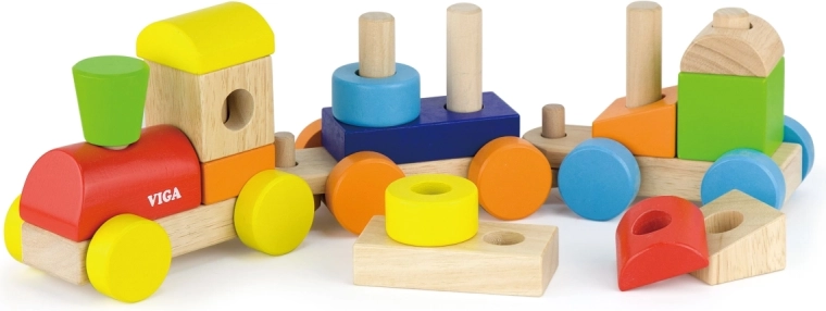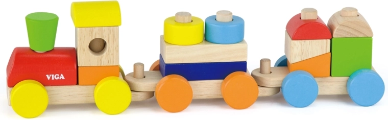 Otkrijte bezvremensku drvenu igračku koja spaja zabavu i učenje. Slagajući vlak VIGA sastoji se od lokomotive i dvaju vagončića s obojenim kockama koje se mogu slobodno preslagivati. Djeca uvježbavaju koordinaciju oko–ruka, logičko razmišljanje te prepoznavanje boja i oblika.