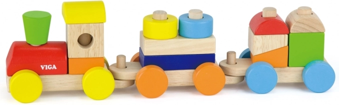 Drveni slagajući vlak VIGA 41 cm. Sigurna edukativna igračka za djecu od 18 mjeseci, razvija motoriku, prepoznavanje boja i oblika. Kvalitetna drvena izrada.