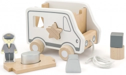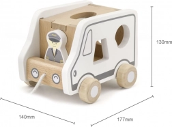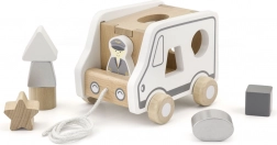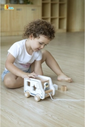 Ova drvena vučna igračka u obliku kamiona spaja dvije omiljene aktivnosti – povlačenje na uzici i umetanje oblika. Djeca razvijaju prepoznavanje oblika i prostornu percepciju, dok uživaju u kretanju i maštovitoj igri s lijepim kamiončićem.