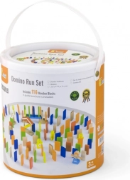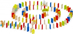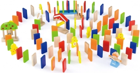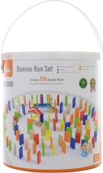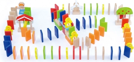 Igra razvija ključne vještine: trenira spoj oko–ruka, potiče koordinaciju, preciznost pokreta i suradnju među djecom. Nakon slaganja dovoljno je potaknuti prvi dio i uživati u savršenom domino efektu. Praktična kanta s ručkom olakšava spremanje i prenošenje.