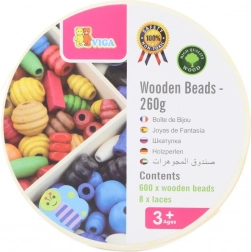 Drvene perlice Viga nude beskrajne mogućnosti za kreativnost i zabavu. Djeca mogu pomoću 8 priloženih špagica nanizati ukupno 600 perlica i stvoriti prekrasne narukvice i ogrlice. Ova igračka pomaže u razvoju dječje kreativnosti i fine motorike.