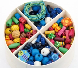 Set dolazi s drvenom kutijom s pregradama, idealnom za spremanje perlica i špagica.