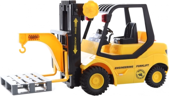 Dječji viljuškar 1:14 sa svjetlima i zvukovima. Baterije 3× AG13 uključene u pakiranje. Sjajna igra skladišta za djecu od 3 godine.