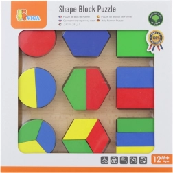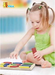 Ova drvena edukativna slagalica za umetanje VIGA idealna je igračka za prvo otkrivanje svijeta oblika i boja. Robusna drvena ploča s preciznim izrezima i 18 obojenih dijelova uči djecu razvrstavanju, koordinaciji oko–ruka te razvija prostornu maštu.