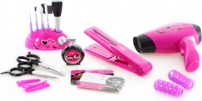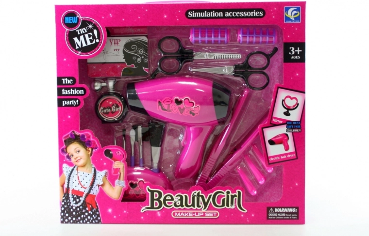 Razmazite male modne stručnjakinje ovim kompletnim setom za ljepotu. Sadrži funkcionalni igraći fen na baterije, peglu za kosu, škare, uvijače, kistove i druge dodatke za kreativnu igru. Idealan za djecu od 3 godine, potiče maštu i finu motoriku. Sigurna igračka, bogata oprema i jednostavno upravljanje razveselit će svaku malu stilisticu.