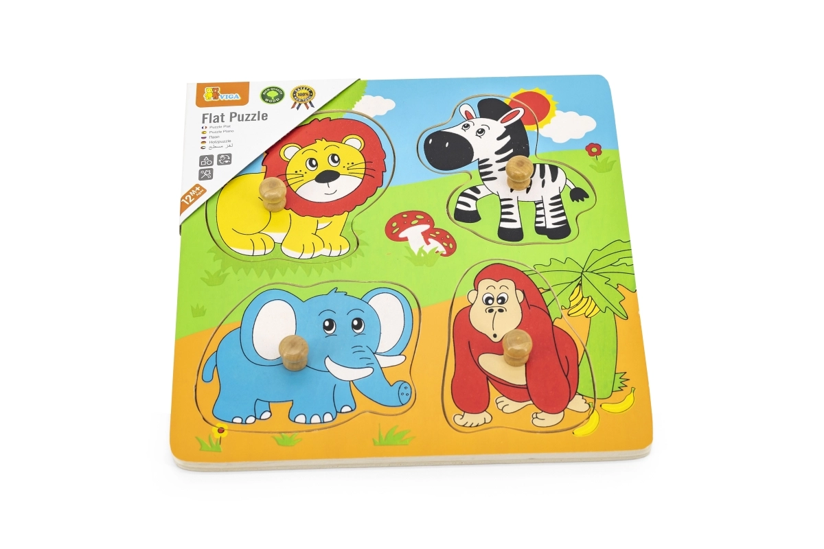 Zahvaljujući čvrstoj izradi i sigurnim materijalima djeca kroz igru vježbaju finu motoriku, logičko razmišljanje i strpljenje. Pestri grafički prikazi potiču vizualnu percepciju i učenje naziva životinja.