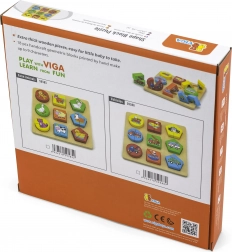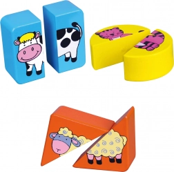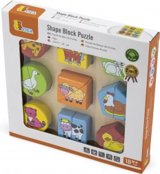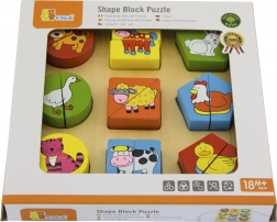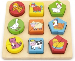VIGA nudi drvene edukativne puzzle s devet šarenih dijelova, od kojih djeca mogu sastaviti slike različitih životinja, poput kravice, patkice i zeca. Igra omogućuje razvoj motoričkih vještina i prepoznavanje boja i oblika. Zahvaljujući sigurnim i netoksičnim bojama, ove su puzzle idealne za malu djecu.