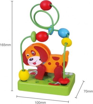 Drveni labirint sa psićem idealan je za razvoj fine motorike i koordinacije ruka-oko kod djece. Ovaj labirint s neonskim perlicama na metalnim žicama osigurava sate zabave te uči djecu koncentraciji i strpljenju. Sa šarenom bazom i veselim psićem igračka je ne samo praktična, već i estetski privlačna.