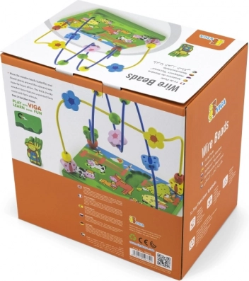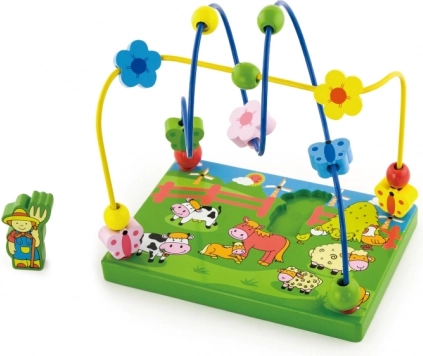 Igrani labirint s perlicama na žicama razvija finu motoriku, koordinacijske vještine i logičko razmišljanje. Čvrsta drvena podloga s motivom farme i magnetska figurica farmera potiču kreativnu igru i istraživanje. Idealno od 18 mjeseci.