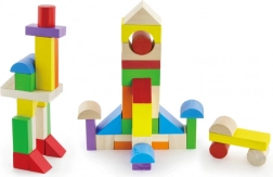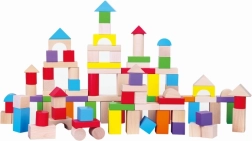 Šarene drvene kocke različitih oblika potiču djecu na slaganje i građenje, čime prirodno vježbaju hvat, koordinaciju oko–ruka i prostornu predodžbu.