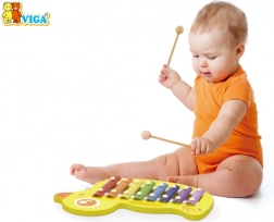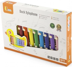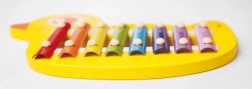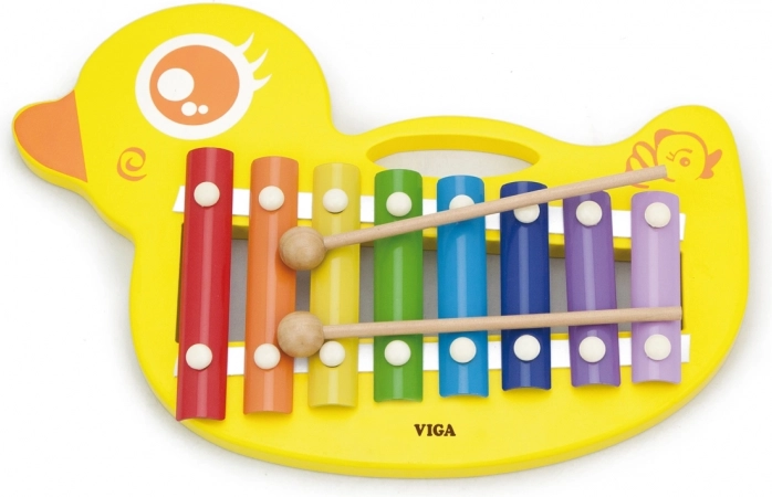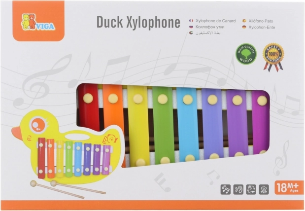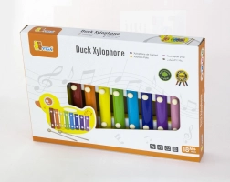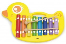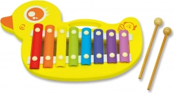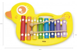 Razbudite dječju maštu ovim šarenim ksilofonom u obliku pačića. Igračka potiče razvoj glazbenog osjećaja, finu motoriku i koordinaciju oko–ruka. Zahvaljujući čvrstom drvenom tijelu i metalnim ugođenim lamelama nudi ugodan zvuk i dug vijek trajanja. Prikladno za djecu od 18 mjeseci.